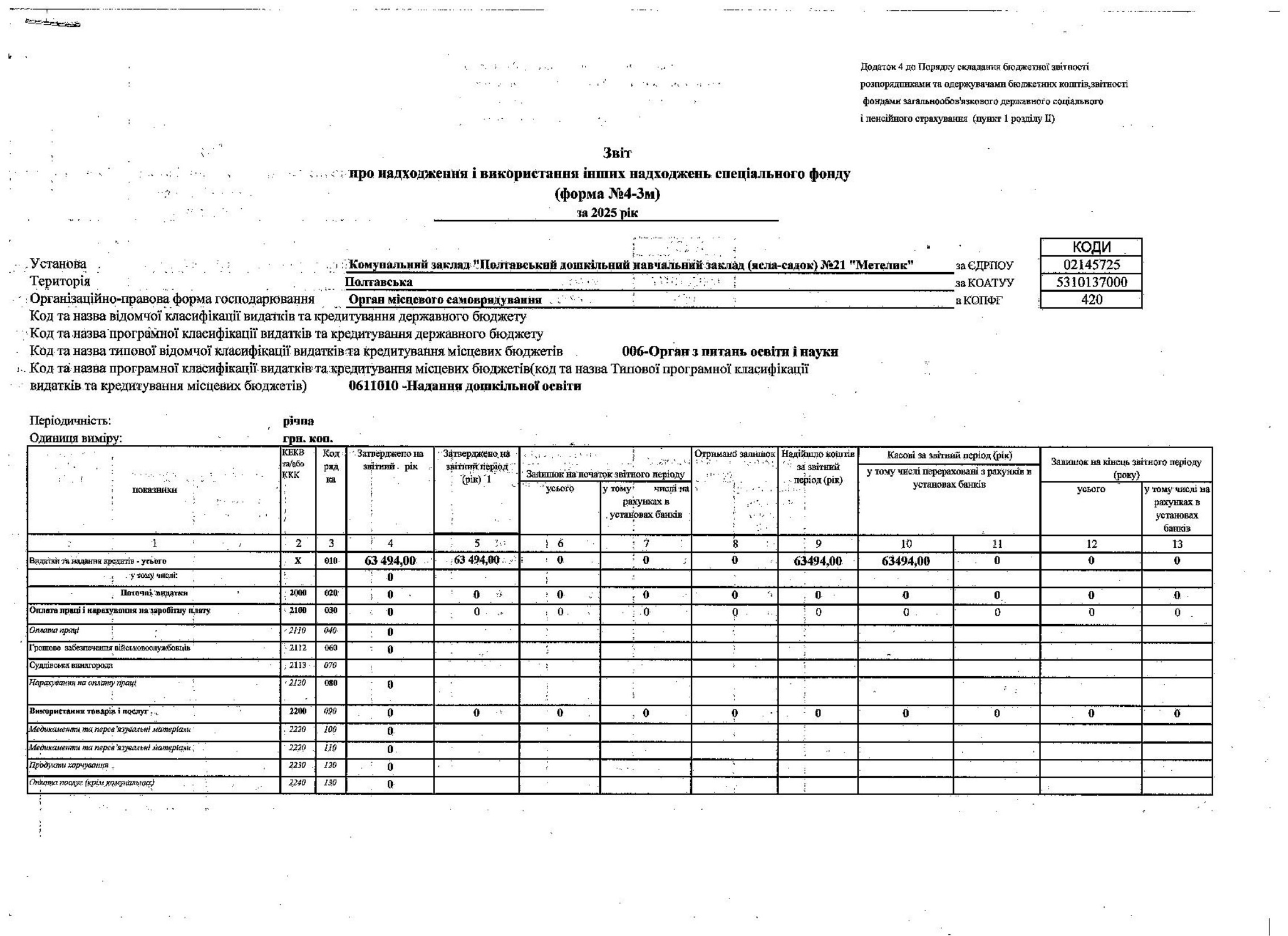 Звіт про надходження і використання інших надходжень спеціального фонду за 2025 рік